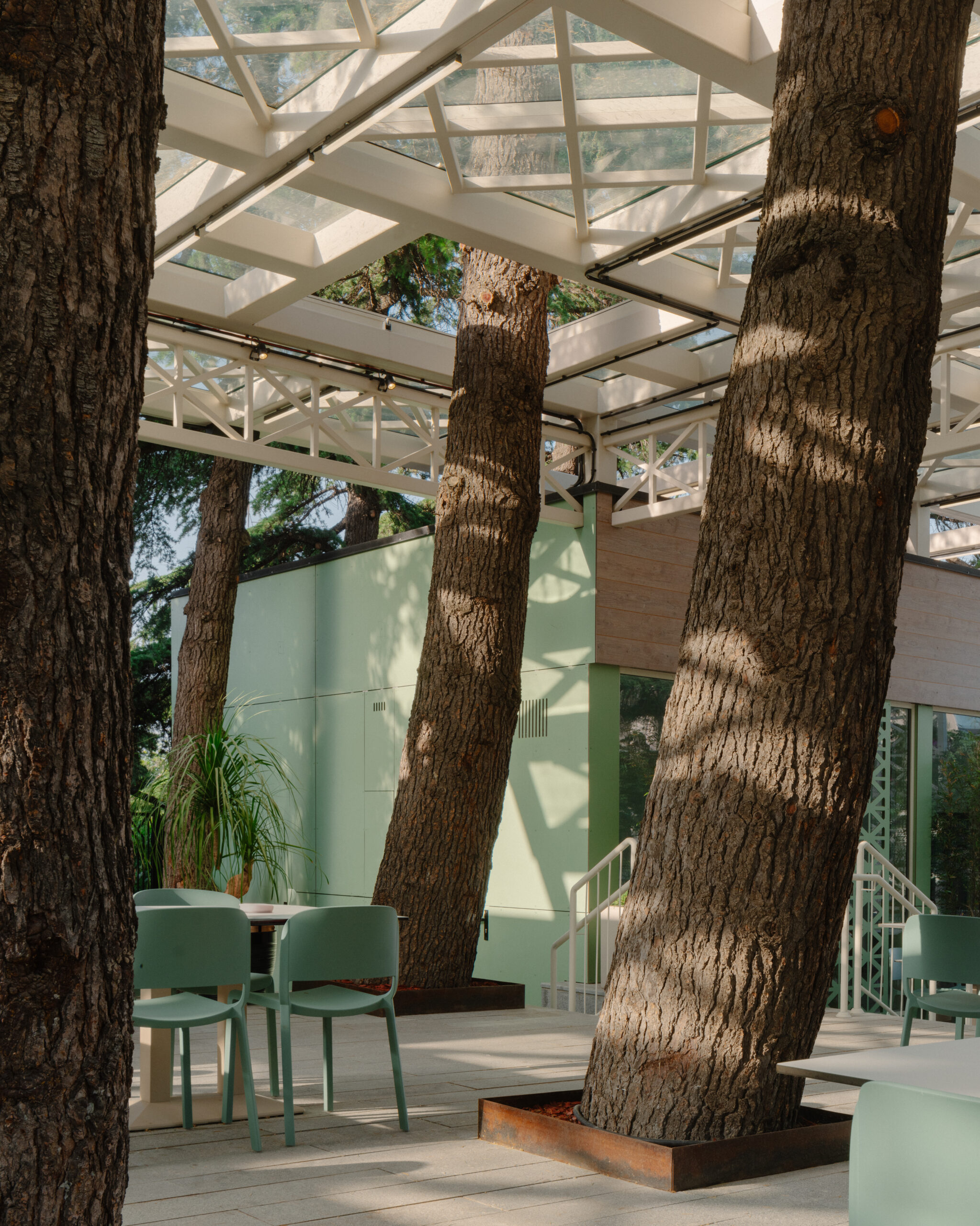 შენობა შედგება ალუმინის კონსტრუქციებისგან, ლამინირებული მინის ვიტრაჟებისა და მოძრავი პანელებისგან, რომლებიც ცვლის ფასადის იერს და ერწყმის პარკის გარემოს. არქიტექტურული ფორმა შთაგონებულია მთაწმინდის ისტორიული ფოტოებით – შორიდან ნაცნობი სილუეტი ახლოდან თანამედროვე დეტალებით გამოირჩევა.