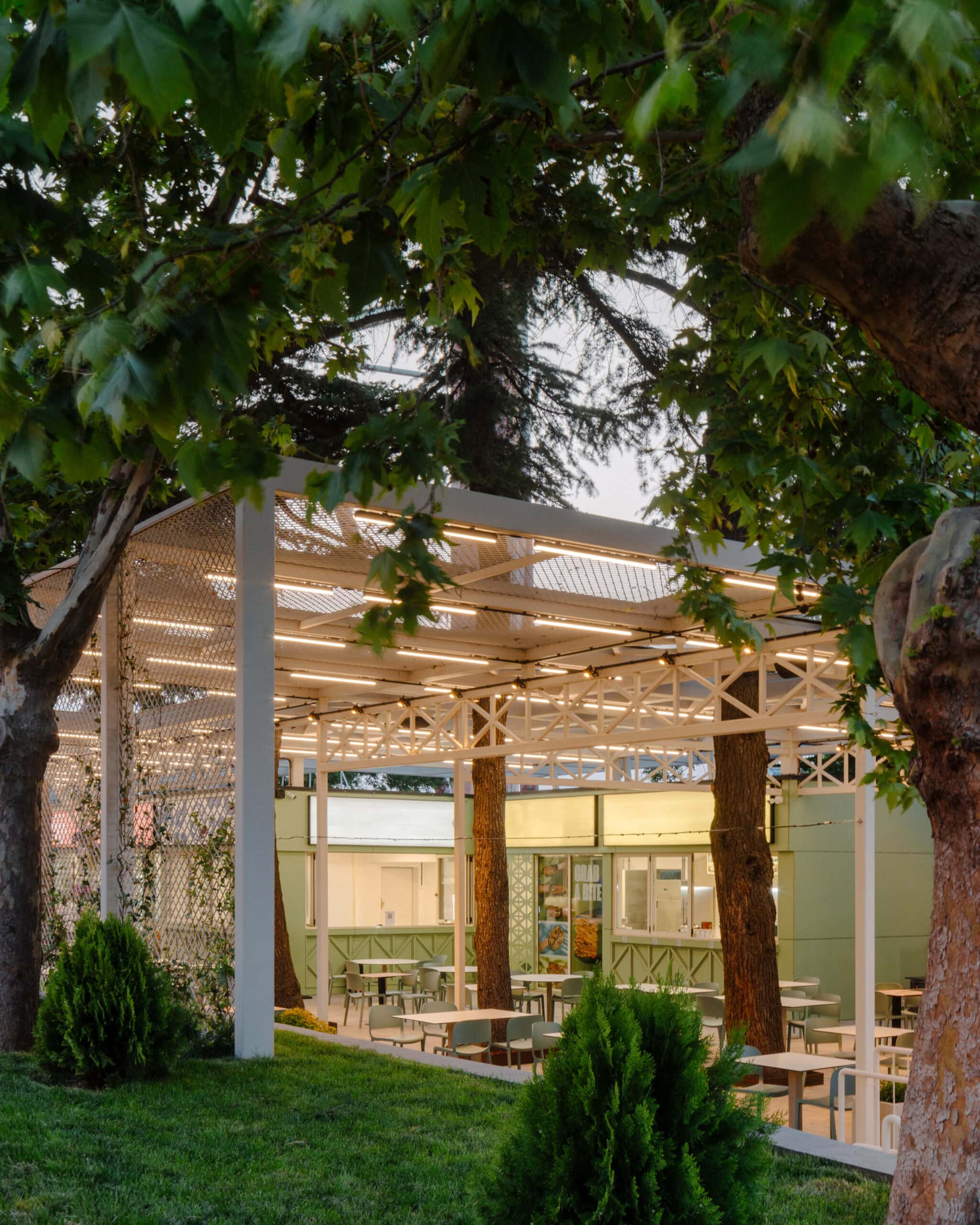 მთაწმინდის პარკში განთავსებული ფუდკორტი შექმნილია აქტიური საზოგადოებრივი სივრცისთვის შესაბამისი სტანდარტებითა და გამძლე მასალებით. პროექტი სრულად Studio 9-ის გუნდმა განახორციელა დაგეგმვიდან მშენებლობამდე.