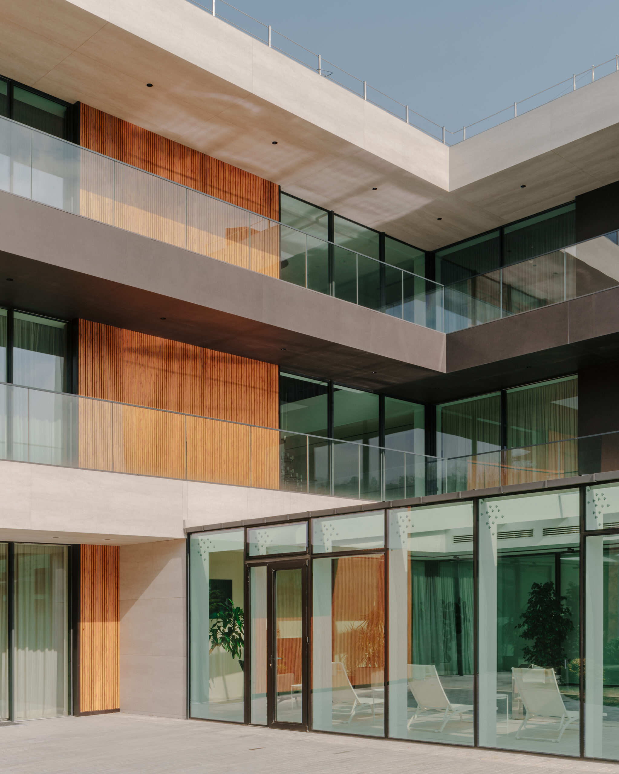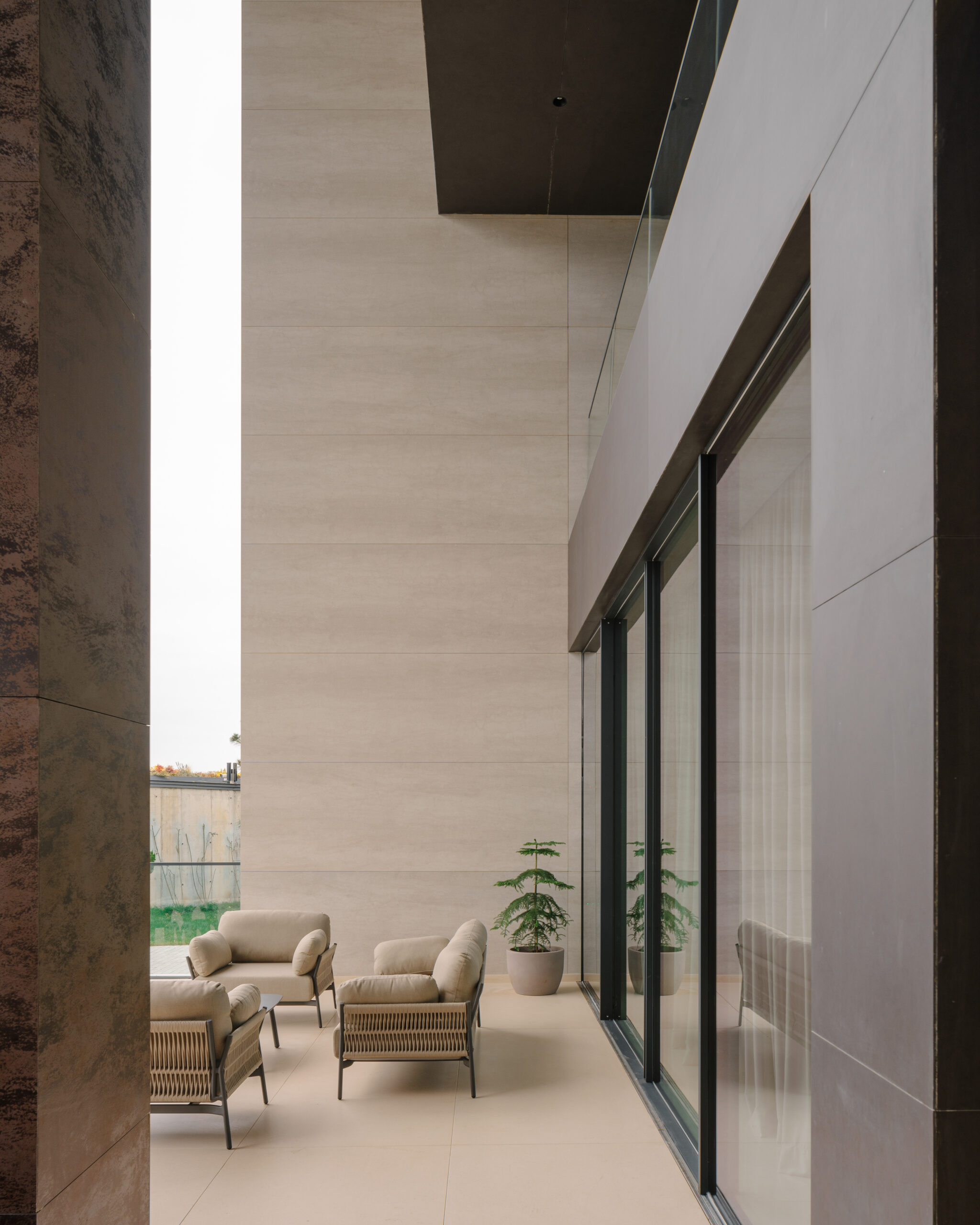 ეს ოთხსართულიანი საცხოვრებელი სახლი აშენდა კაკლებში, 2129 მ² ფართობის ნაკვეთზე. პროექტში მთავარ გამოწვევას წარმოადგენდა პირადი სივრცის და ბუნებრივი სინათლის მაქსიმალური გამოყენება, ქალაქის ხედების გარეშე. არქიტექტურის მთავარი ელემენტია შიდა ეზო საცურაო აუზით, რომლის ირგვლივაც მოწყობილია ყველა ძირითადი სივრცე. კონსტრუქციული ნაწილი რკინა-ბეტონის კარკასს ეფუძნება, ხოლო ფასადი ნაწილობრივ ბუნებრივი ქვით არის მოპირკეთებული, ხოლო ნაწილობრივ – გალესილი. ვიტრაჟები და დიდი ზომის მინები უზრუნველყოფს ოთახების ბუნებრივ განათებას.