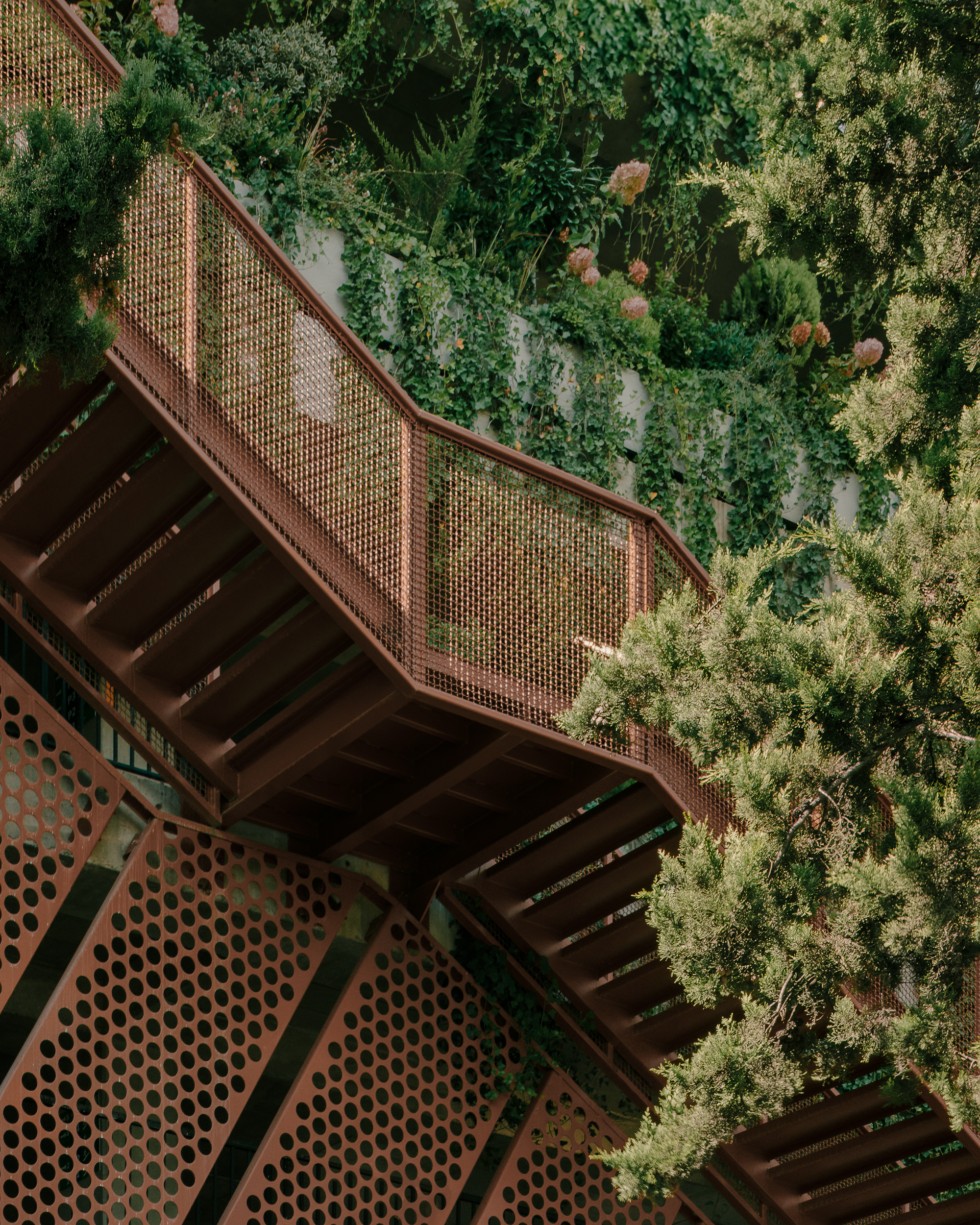 The structure uses reinforced concrete as the primary material, complemented by metal cladding, glazed curtain walls, and a feature stairway that connects all levels and reinforces wayfinding. The building was deliberately set back from cadastral boundaries to improve circulation and reduce visual bulk when viewed from the city’s riverbanks. A large percentage of the facade is left visually open to reduce mass and promote airflow.