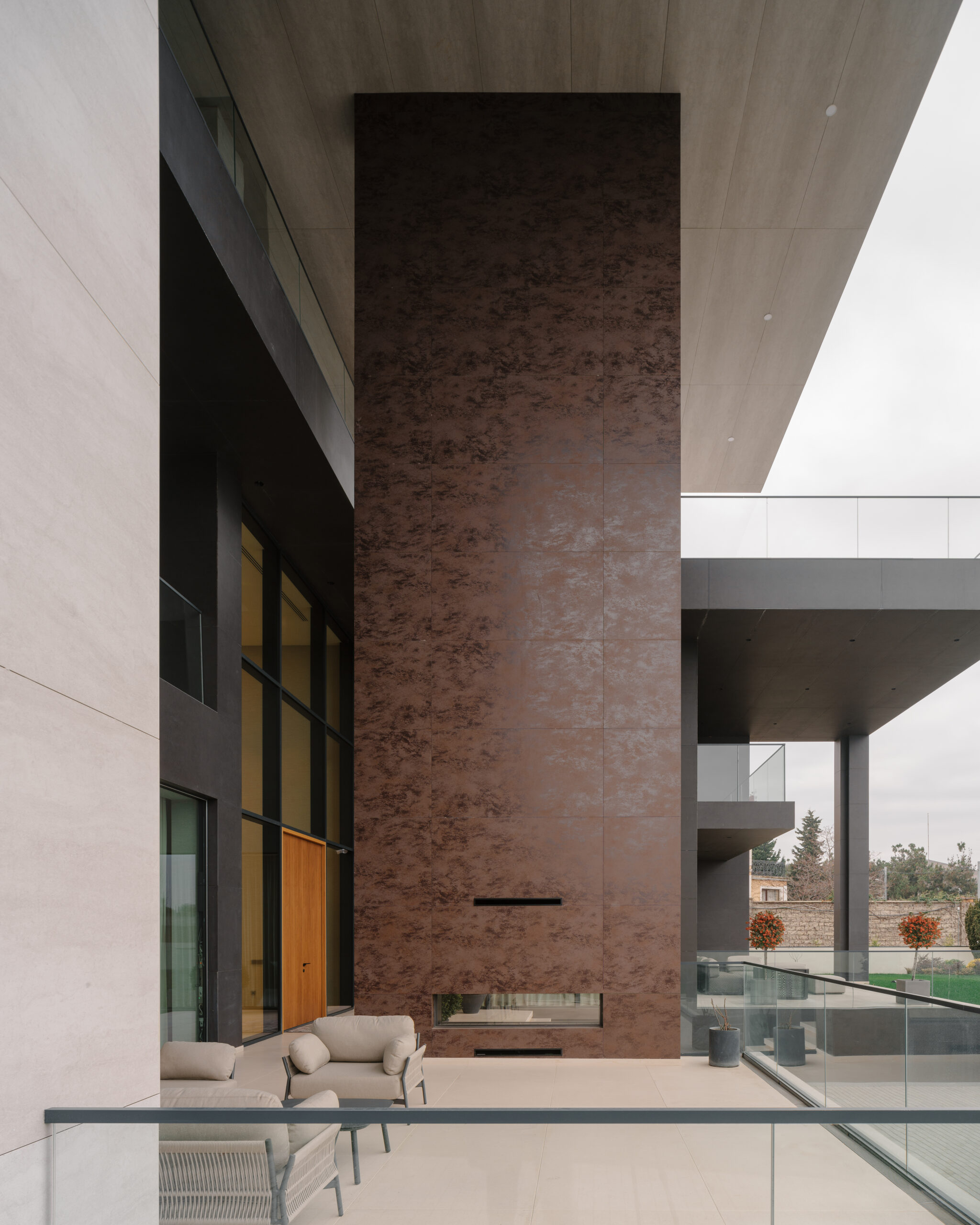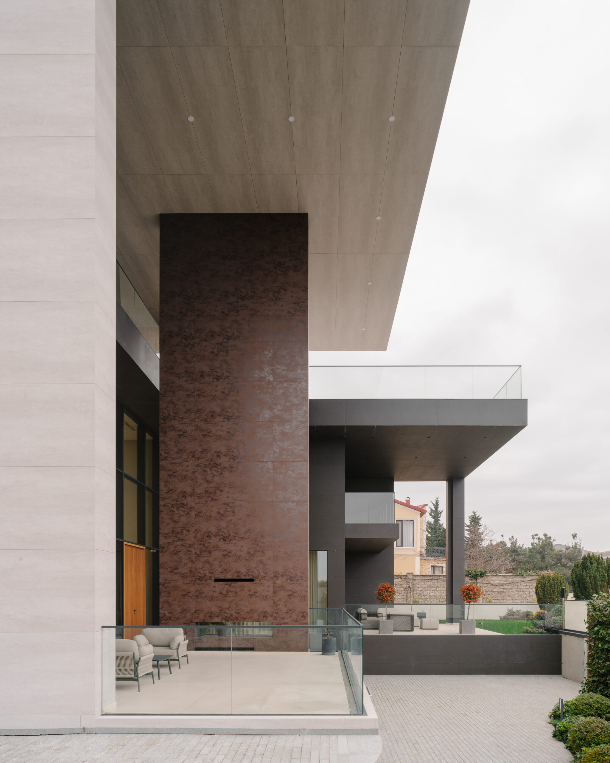 This private residence was designed on a gently sloped 2129 m² plot located in the Kaklebi area of Tbilisi, Georgia. The brief called for a spacious family home that maximizes privacy and spatial flow despite the absence of panoramic views. To meet this challenge, the project centers around a private courtyard with a swimming pool, around which all interior spaces are oriented.